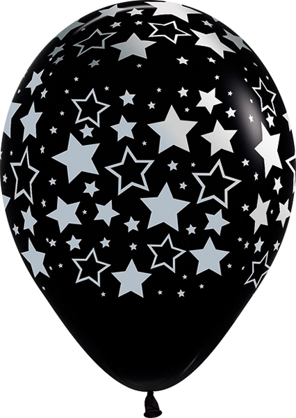 11 Inch Bold Stars Black Latex Balloons 50pk