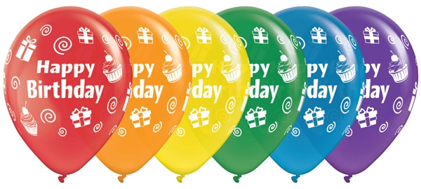 11" PartyPak Happy Birthday Gifts & Cupcakes Latex Balloons 8pk
