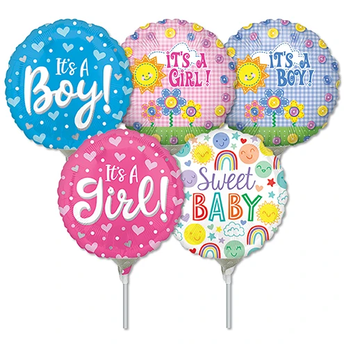These stick balloons are pre-labeled with UPC only for adjustable pricing. Pre-inflated balloons on sticks make great additions to potted plants and floral arrangements. Designs may vary from those pictured, as styles are updated often.