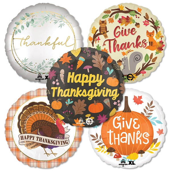 Standard Foil Thanksgiving Balloon Assortment 25pk