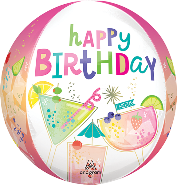 Celebrate in style with this vibrant, eye-catching Cocktail Surprise Orbz balloon! Shaped like a perfect sphere, it features a dazzling design of colorful cocktails, confetti, and bold "Happy Birthday" lettering that pops from every angle. With its glossy, metallic finish and 360-degree artwork, this balloon adds a splash of fun and sophistication to any birthday bash-perfect for adults who love a good party vibe. Whether floating solo or as part of a balloon bouquet, it's sure to be the life of the party!
