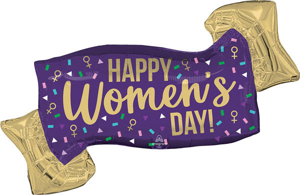 Celebrate empowerment with this banner- shaped balloon featuring a bold "HAPPY Women's DAY!" message in yellow. The purple center is decorated with colorful confetti and female gender symbols, while the gold ends add a festive touch-perfect for Women's Day events and celebrations.