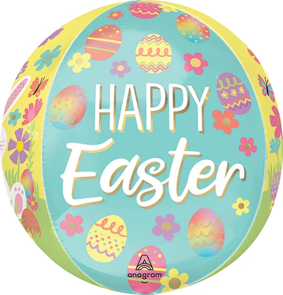 Celebrate Easter with our charming sphere-shaped balloon, featuring a delightful design with a bunny surrounded by flowers and butterflies on two sides, and the message "Happy Easter" surrounded by colorful eggs on the other two sides. Perfect for adding a touch of festive cheer to your Easter celebrations, this balloon makes a wonderful decoration or a thoughtful gift. Ideal for creating a joyful and vibrant atmosphere.