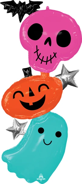 Celebrate Halloween in style with our enchanting Stack Balloon! Adorned with a teal blue ghost, an orange pumpkin, and a pink skull stacked playfully together, this balloon is embellished with bats and stars that add a spooky charm. Perfect for Halloween parties and decorations, it's sure to bewitch guests and create a hauntingly delightful atmosphere.