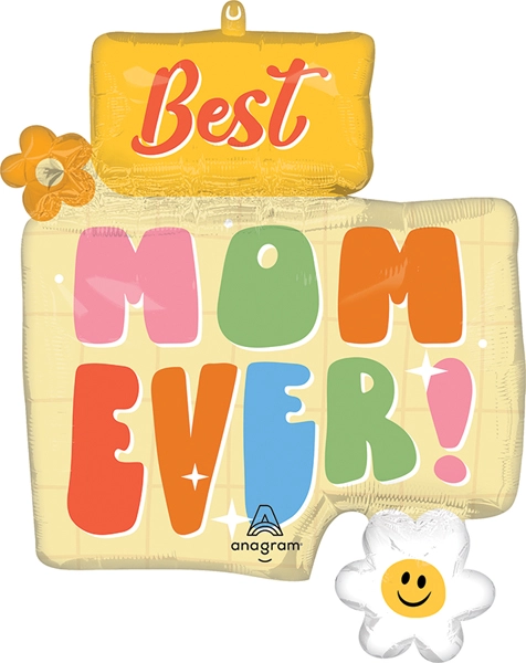 Celebrate mom with our vibrant foil balloon featuring the bold message "Best MOM EVER!". With cheerful multicolored letters, playful flowers, and sparkling accents, this eye-catching design is perfect for Mother's Day or any occasion to show appreciation.