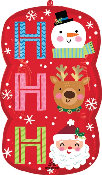 Celebrate the holidays with our Ho Ho Ho Balloon! This festive balloon features a fun design where Santa, a reindeer, and a snowman each form the "O" in "Ho Ho Ho." Perfect for adding a playful touch to your Christmas parties, family gatherings, or holiday events, it's crafted from durable materials and is easy to inflate. Spread joy and holiday cheer with this delightful and whimsical decoration!