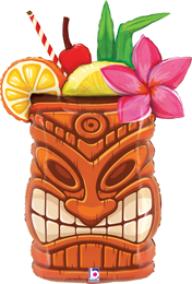 Bring island vibes to your bar with this vibrant tiki mug featuring a carved wooden face, tropical fruit garnish, "aloha" flair, and colorful cocktail-ready design. Perfect for luau parties & tiki-themed events.